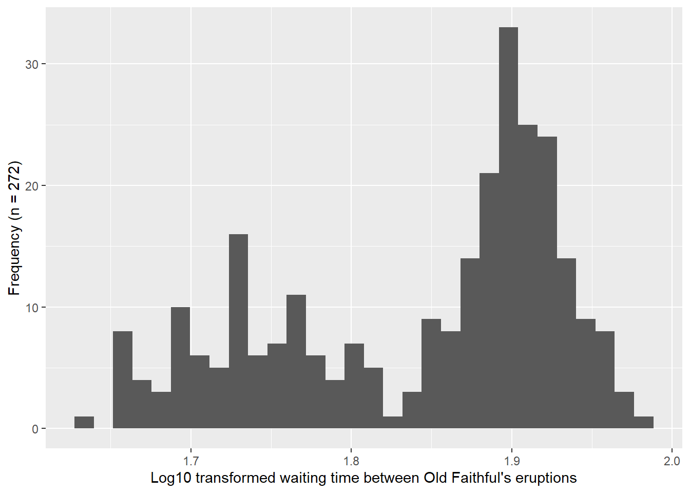 xlab("Log10 transformed waiting time between Old Faithful's eruptions") +